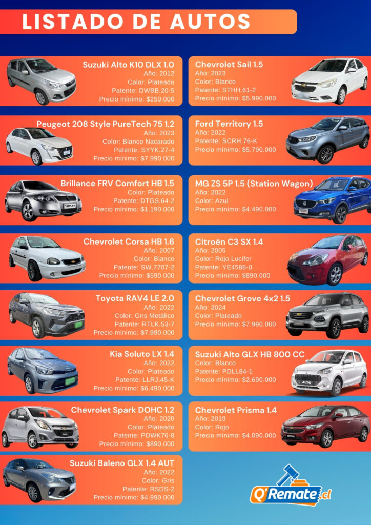 ¡Atención! Los invitamos al remate de vehículos que se realizará el día martes 24 de febrero de 2026 a las 12:00 PM en Batuco, Lampa, Avenida España esquina Las Frambuesas, Parcela 37. No te pierdas esta oportunidad de encontrar vehículos a precios inmejorables. ¡Te esperamos!