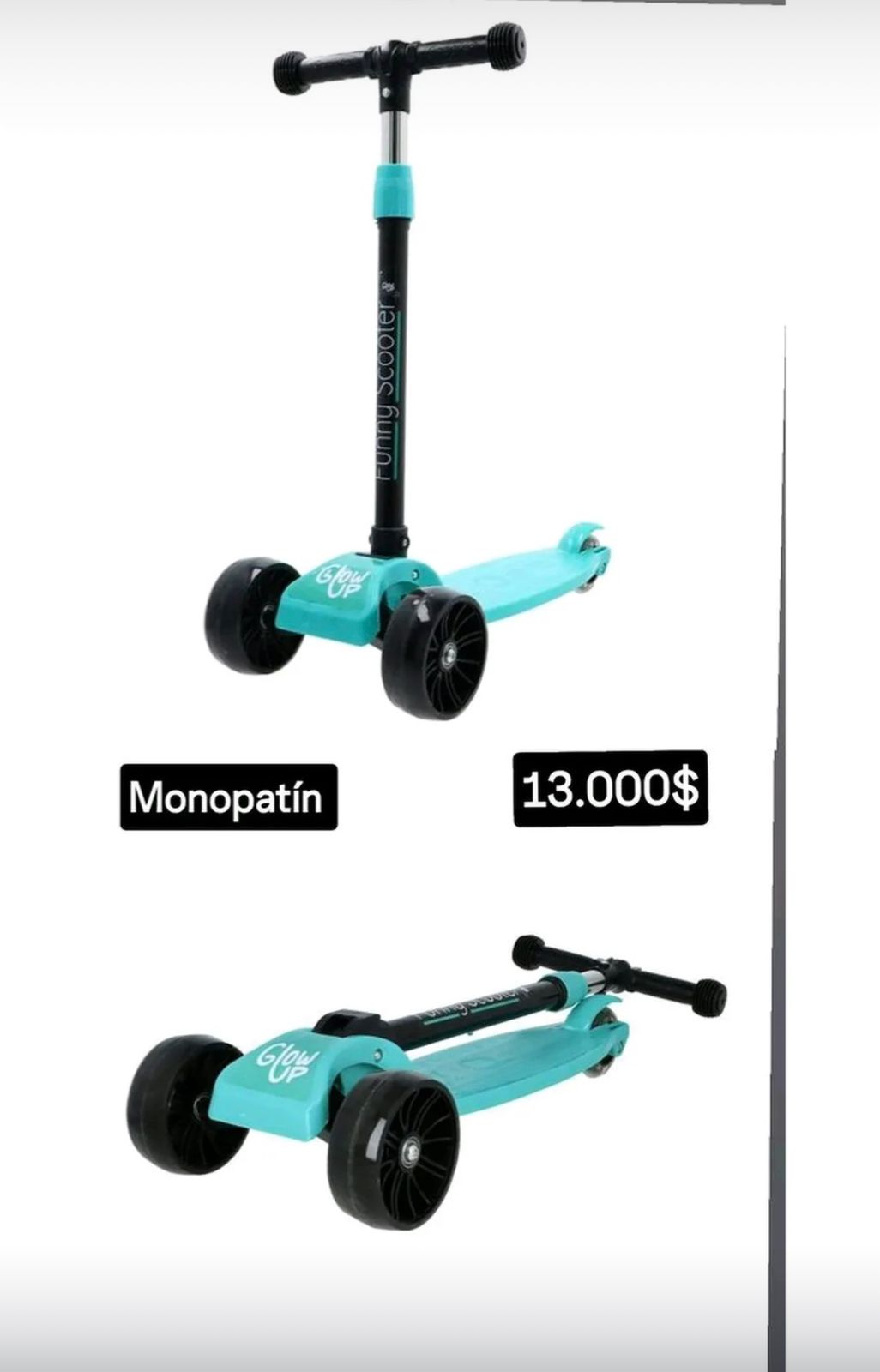 Scooter Infantil Glowup Calipso¡ Prepárate para una experiencia llena de diversión y movilidad con nuestro scooter GlowUp para niños! Con un vibrante diseño en tonos celeste y negro, este scooter no solo es una opción emocionante, sino también una herramienta confiable para la exploración infantil.